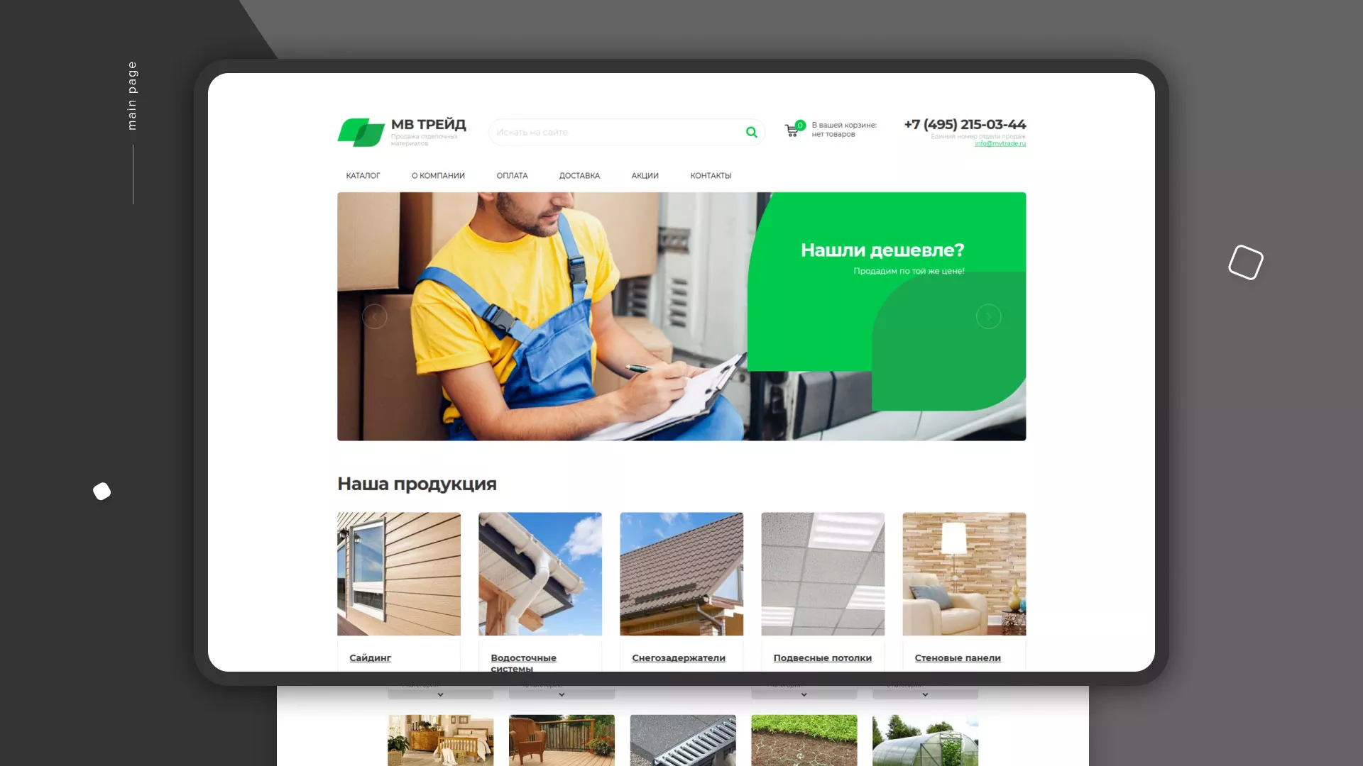 Компания «МВ Трейд» осуществляет продажу сайдинга и отделочных материалов через интернет со своих складов в Мышкине. За 17 лет компания зарекомендовала себя надежным поставщиком. Товары реализуются как оптом, так и в розницу.