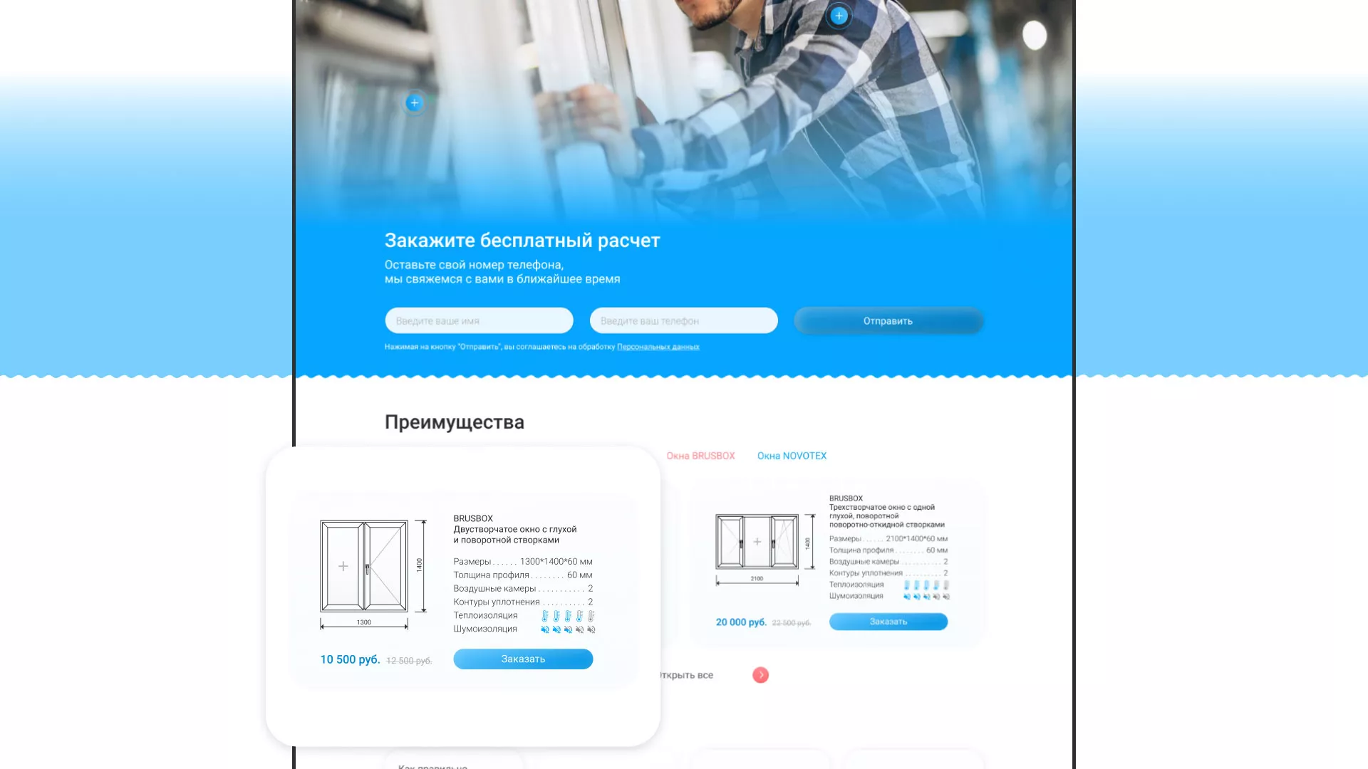 Задачей по проекту было — разработать светлый, дружелюбный дизайн сайта-каталога компании «Окна ВИДО» в Мышкине, интерфейс взаимодействия с пользователем и проработать внутренние страницы, наглядно отобразив информацию иллюстрациями.
